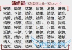 组词大全详解[靖组词]如:安靖、简靖、端靖、康靖、清靖、谦靖、密靖、李靖、靖约、靖重、靖晏、靖难、靖柝、靖遏、靖默、靖兵、靖慎、靖深、靖康、靖享、靖匡、靖共...