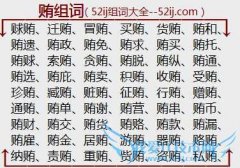 组词大全详解[贿组词]如:赇贿、迁贿、冒贿、买贿、货贿、贿和、贿遗、贿政、贿免、贿求、贿买、贿托、贿赇、索贿、贪贿、贿脱、贿纵、贿通、贿选、贿庇、贿卖、积贿...