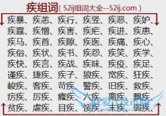 组词大全详解[疾组词]如:疾暴、疾恙、疾行、疾竖、疾恶、疾妒、疾霆、疾憎、疾害、疾疟、疾进、疾患、疾马、疾首、疾隙、疾医、疾痛、疾心、疾俗、疾状、疾书、疾怨...