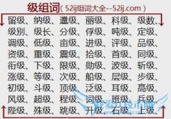 组词大全详解[级组词]如:留级、纳级、邋级、丽级、科级、级数、级别、级长、分级、俘级、吨级、定级、调级、低级、亩级、进级、评级、品级、资级、重级、震级、拾级...