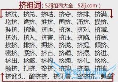 组词大全详解[挤组词]如:挤洗、挤兑、挤咕、挤夺、挤排、挤满、圪挤、谗挤、推挤、围挤、涌挤、攒挤、捱挤、挤簇、挤匝、挤落、挤对、挤臧、挤奶、挤入、挤害、挤压...