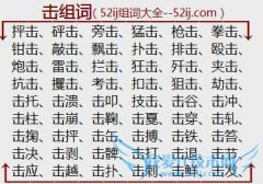组词大全详解[击组词]如:抨击、砰击、旁击、猛击、枪击、拳击、钳击、敲击、飘击、扑击、排击、殴击、炮击、雷击、拦击、狂击、歼击、夹击、抗击、攫击、考击、扣击...