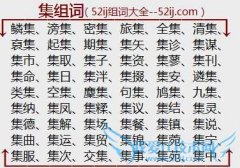 组词大全详解[集组词]如:鳞集、滂集、密集、旅集、全集、清集、裒集、起集、期集、集矢、集诊、集谋、集市、集取、集子、集资、集蓼、集刊、集命、集日、集泮、集掇...