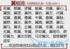 组词大全详解[冀组词]如:荣冀、期冀、谬冀、觖冀、侥冀、冀心、冀图、冀望、冀州、冀钞、冀方、河冀、规冀、邀冀、豫冀、中冀、徼冀、冀缺、冀野、冀志、冀幸、冀阙...
