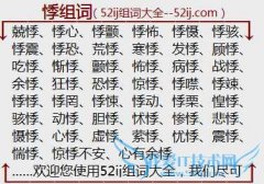 组词大全详解[悸组词]如:兢悸、悸心、悸颤、悸怖、悸慑、悸骇、悸震、悸恐、荒悸、寒悸、发悸、顾悸、吃悸、惭悸、颤悸、怖悸、病悸、战悸、余悸、狂悸、恐悸、惊悸...