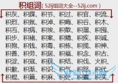 组词大全详解[积组词]如:积灰、积牒、积节、积过、积官、积流、积烈、积氛、积淖、积晦、积谷、积木、积冱、积病、积埃、积散、积溜、积囤、积步、积褚、积案、积精...