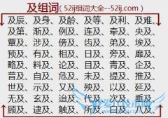 组词大全详解[及组词]如:及辰、及身、及龄、及等、及利、及难、及第、渐及、例及、连及、牵及、央及、覃及、涉及、傍及、齿及、弟及、埃及、预及、有及、相及、日及...