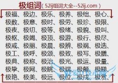 组词大全详解[极组词]如:极福、极边、极乐、极养、极绌、极心、极数、极意、极时、极劳、极珍、极限、极夜、极切、极等、极绪、极貌、极叫、极枢、极竭、极顶、极游...