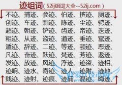 组词大全详解[迹组词]如:不迹、捕迹、参迹、伯迹、摈迹、厕迹、创迹、车迹、黜迹、陈迹、尘迹、骋迹、超迹、朝迹、铲迹、齿迹、帝迹、迭迹、粗迹、从迹、盗迹、道迹...
