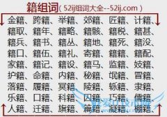 组词大全详解[籍组词]如:金籍、跨籍、举籍、郊籍、匠籍、计籍、籍取、籍年、籍略、籍骸、籍税、籍甚、籍兵、籍书、籍丛、籍地、籍死、籍没、籍口、籍伍、籍礼、寄籍...