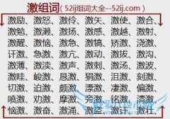 组词大全详解[激组词]如:激励、激怒、激伶、激矢、激使、激合、激勉、激濑、激扬、激感、激越、激射、激醒、激恼、激急、激犒、矫激、浇激、讦激、急激、激亢、激动...