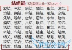 组词大全详解[结组词]如:凝结、气结、痞结、铺结、取结、清结、溶结、融结、审结、绻结、虬结、亲结、凭结、秘结、密结、眉结、挛结、赂结、瘤结、链结、六结、联结...