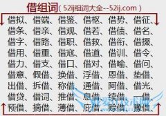 组词大全详解[借组词]如:借拟、借端、借鉴、借枢、借势、借征、借条、借亲、借观、借若、借债、借名、借字、借路、借职、借救、借衔、借掇、借用、借重、借寇、借道...