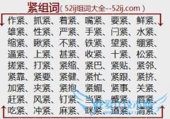 组词大全详解[紧组词]如:作紧、抓紧、着紧、嘴紧、要紧、鲜紧、雄紧、性紧、严紧、手紧、闩紧、水紧、缩紧、瞅紧、不紧、铁紧、望紧、绷紧、逼紧、上紧、甚紧、收紧...