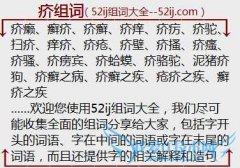 组词大全详解[疥组词]如:疥癞、癣疥、疥癣、疥痒、疥疠、疥驼、扫疥、痒疥、疥疮、疥壁、疥搔、疥瘙、疥骚、疥痨宾、疥蛤蟆、疥骆驼、泥猪疥狗、疥癣之病、疥癣之疾...