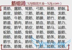 组词大全详解[筋组词]如:青筋、露筋、驽筋、弓筋、箍筋、筋骸、筋度、狼筋、兰筋、筋液、筋骼、龙筋、脑筋、牛筋、鹿筋、筋膜、筋竹、筋痿、筋道、筋肉、筋丝、筋血...