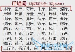 组词大全详解[斤组词]如:木斤、面斤、奇斤、千斤、论斤、煤斤、斤墨、斤脉、斤量、斤石、斤械、讪斤、山斤、般斤、鼻斤、铜斤、市斤、丝斤、俟斤、盐斤、眼斤、郢斤...