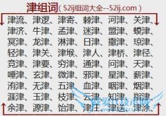 组词大全详解[津组词]如:津流、津逻、津寄、棘津、河津、关津、津济、牛津、孟津、迷津、盟津、蟆津、冥津、龙津、淋津、日津、撒津、琼津、轻津、津关、津堠、津人...