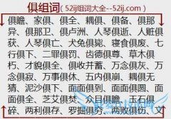 组词大全详解[俱组词]如:俱瞻、家俱、俱全、耦俱、俱备、俱那异、俱那卫、俱卢洲、人琴俱逝、人赃俱获、人琴俱亡、犬兔俱毙、寝食俱废、七行俱下、二罪俱罚、齿德俱...
