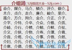 组词大全详解[介组词]如:命介、媒介、马介、鳞介、评介、僻介、木介、贞介、走介、廉介、峻介、果介、孤介、方介、拘介、金介、介正、介子、介字、介恃、介卒、介众...