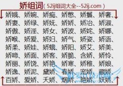 组词大全详解[娇组词]如:娇娥、娇婉、娇痴、娇憨、娇鬟、娇奢、娇妻、娇绿、娇妩、娇娇、娇冶、娇淑、娇傲、娇淫、娇女、娇波、娇姹、娇娜、娇喉、娇爱、娇妇、娇气...