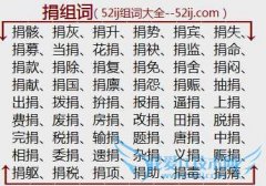 组词大全详解[捐组词]如:捐骸、捐灰、捐升、捐势、捐宾、捐失、捐募、当捐、花捐、捐袂、捐监、捐命、捐款、捐除、捐复、捐免、捐舍、捐闷、捐献、捐国、捐廪、捐怨...