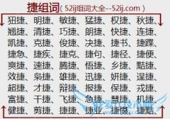 组词大全详解[捷组词]如:狃捷、明捷、敏捷、猛捷、权捷、秋捷、翘捷、清捷、巧捷、朗捷、快捷、连捷、凯捷、克捷、俊捷、决捷、捷书、捷蹀、捷急、捷疾、捷克、捷句...