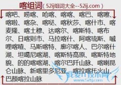 组词大全详解[喀组词]如:喀吧、唠喀、呛喀、喀喀、喀巴、喀嚓、喀啦、喀杂、喀哒、喀秋莎、喀什市、喀麦隆、喀土穆、达喀尔、喀斯特、喀布尔、日喀则市、马拉喀什、...