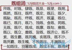 组词大全详解[既组词]如:拜既、时既、肆既、既是、既望、既朔、既然、既往、既终、既定、既后、既夕、既龀、既而、终既、既济、既灌、既位、既已、既月、既乃、蚀既...