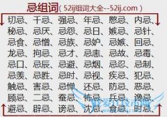 组词大全详解[忌组词]如:切忌、千忌、强忌、年忌、愍忌、内忌、秘忌、忌厌、忌怨、忌日、嫉忌、忌针、忌食、忌憎、忌族、忌妒、忌嫉、回忌、龙忌、拘忌、忌才、忌恚...