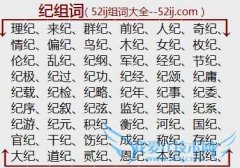 组词大全详解[纪组词]如:理纪、来纪、群纪、前纪、人纪、奇纪、情纪、偏纪、鸟纪、木纪、女纪、枚纪、伦纪、乱纪、纪纲、军纪、经纪、节纪、纪极、纪过、纪功、纪经...