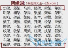组词大全详解[架组词]如:劝架、落架、马架、陵架、梁架、擎架、趴架、棚架、架弄、架屋、架车、架田、架陷、架话、架殿、架羊、架槽、架空、架工、架势、锯架、开架...