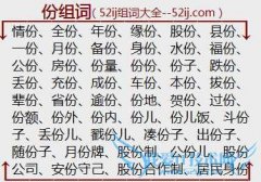 组词大全详解[份组词]如:情份、全份、年份、缘份、股份、县份、一份、月份、备份、身份、水份、福份、公份、房份、份量、份份、份子、跌份、丢份、充份、成份、车份...