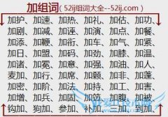 组词大全详解[加组词]如:加护、加速、加热、加礼、加估、加功、加剧、加减、加诬、加演、加点、加餐、加添、加鞭、加衔、加车、加气、加紧、加日、加盟、加码、加劲...