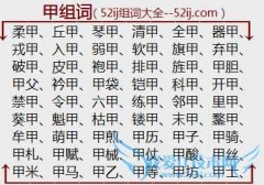 组词大全详解[甲组词]如:柔甲、丘甲、琴甲、清甲、全甲、器甲、戎甲、入甲、弱甲、软甲、旗甲、弃甲、破甲、皮甲、袍甲、排甲、旌甲、甲胆、甲父、衿甲、甲袋、铠甲...