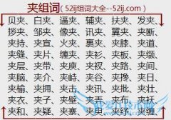 组词大全详解[夹组词]如:贝夹、白夹、逼夹、辅夹、扶夹、发夹、拶夹、邹夹、像夹、讯夹、翼夹、夹断、夹持、夹宣、火夹、裹夹、夹膝、夹道、夹缝、夹片、缠夹、夹衫...