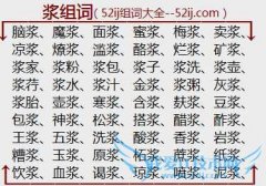 组词大全详解[浆组词]如:脑浆、魔浆、面浆、蜜浆、梅浆、卖浆、凉浆、燎浆、滥浆、酪浆、烂浆、矿浆、浆家、浆粉、浆包、浆子、浆洗、浆壶、浆荇、浆水、浆汁、金浆...