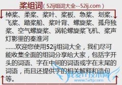 组词大全详解[桨组词]如:棹桨、柔桨、桨叶、桨板、急桨、划桨、飞桨、踏桨船、桨叶背、螺旋桨、孤舟独桨、空气螺旋桨、涡轮螺旋桨飞机、桨声灯影里的秦淮河 另外还...