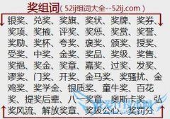 组词大全详解[奖组词]如:银奖、兑奖、奖旗、奖状、奖牌、奖券、奖项、奖掖、评奖、奖惩、奖赏、奖誉、奖励、奖杯、夸奖、褒奖、颁奖、授奖、受奖、中奖、金奖、奖品...
