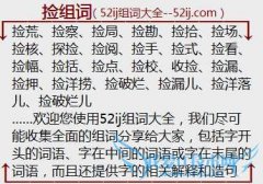 组词大全详解[捡组词]如:捡荒、捡察、捡局、捡勘、捡拾、捡场、捡核、探捡、捡阅、捡手、捡式、捡看、捡幅、捡括、捡点、捡校、收捡、捡漏、捡押、捡洋捞、捡破烂、...