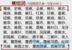 组词大全详解[蕉组词]如:覆蕉、梦蕉、蛮蕉、金蕉、蕉叶、蕉农、蕉麻、蕉葛、蕉红、红蕉、甘蕉、番蕉、团蕉、香蕉、芭蕉、铁蕉、蕉扇、蕉白、蕉萃、蕉衫、蕉园、蕉布...
