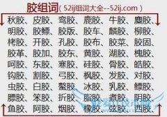 组词大全详解[胶组词]如:秋胶、皮胶、鸾胶、鹿胶、牛胶、麋胶、明胶、胶鳔、胶版、胶车、麟胶、柳胶、栲胶、开胶、孔胶、胶布、胶菜、胶固、胶革、胶加、胶东、黄胶...