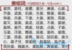 组词大全详解[姜组词]如:姜饼、姜桂、姜夔、姜牙、廉姜、山姜、齐姜、孟姜、伯姜、生姜、猴姜、姬姜、恭姜、共姜、干姜、大姜、姜张、周姜、姜文、姜姜、姜孟、茈姜...