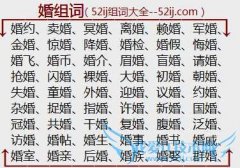 组词大全详解[婚组词]如:婚约、卖婚、冥婚、离婚、赖婚、军婚、金婚、惊婚、降婚、婚检、婚假、悔婚、婚飞、婚币、婚介、眉婚、盲婚、请婚、抢婚、闪婚、裸婚、大婚...