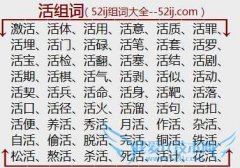 组词大全详解[活组词]如:激活、活体、活用、活意、活质、活罪、活埋、活门、活碌、活笔、活套、活罗、活宝、活检、活翻、活塞、活结、活剧、活期、活棋、活气、活剥...