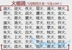 组词大全详解[火组词]如:油火、迎火、佚火、萤火、藻火、映火、营火、荧火、战火、遭火、养火、业火、一火、悬火、熏火、哑火、烟火、鱼火、渊火、渔火、云火、芋火...