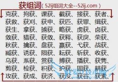 组词大全详解[获组词]如:克获、拘获、课获、截获、接获、获者、获救、获刈、获申、获匹、获罪、缉获、获生、拿获、掳获、略获、虏获、卤获、敛获、猎获、获敛、获释...