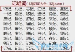 组词大全详解[记组词]如:诏记、札记、志记、注记、照记、篆记、一记、逸记、移记、遗记、隐记、茔记、应记、摘记、游记、奏记、玄记、稳记、图记、条记、诵记、识记...