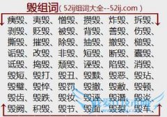组词大全详解[毁组词]如:痍毁、夷毁、憎毁、攒毁、炸毁、拆毁、剥毁、贬毁、被毁、背毁、善毁、伤毁、撕毁、摧毁、除毁、抽毁、撤毁、槌毁、诟毁、改毁、非毁、短毁...