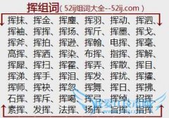 组词大全详解[挥组词]如:挥抹、挥金、挥麈、挥羽、挥动、挥泗、挥袖、挥挥、挥扬、挥斤、挥墨、挥戈、挥斧、挥拍、挥逊、挥翰、电挥、挥毫、高挥、挥洒、挥染、布挥...